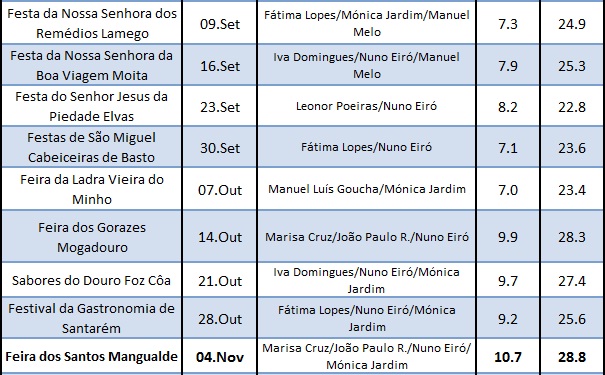 Já o 'Toca a Mexer', não foi além da 13ª posição na tabela com 540 000 espectadores, 5.7% de rating, e uma quota de mercado de 13,7%.